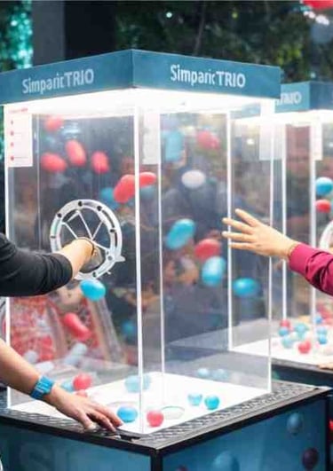 Ativação sensorial de alto engajamento e visibilidade, projetada para dinâmicas rápidas e retenção de público.